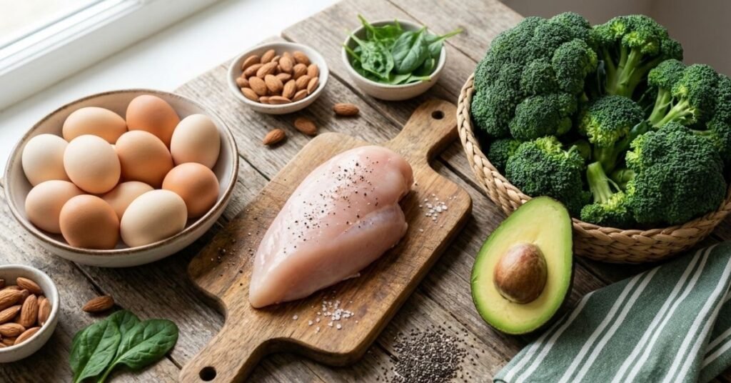 - Lean Proteins: Chicken breast, lean ground turkey, eggs, canned tuna, and salmon.