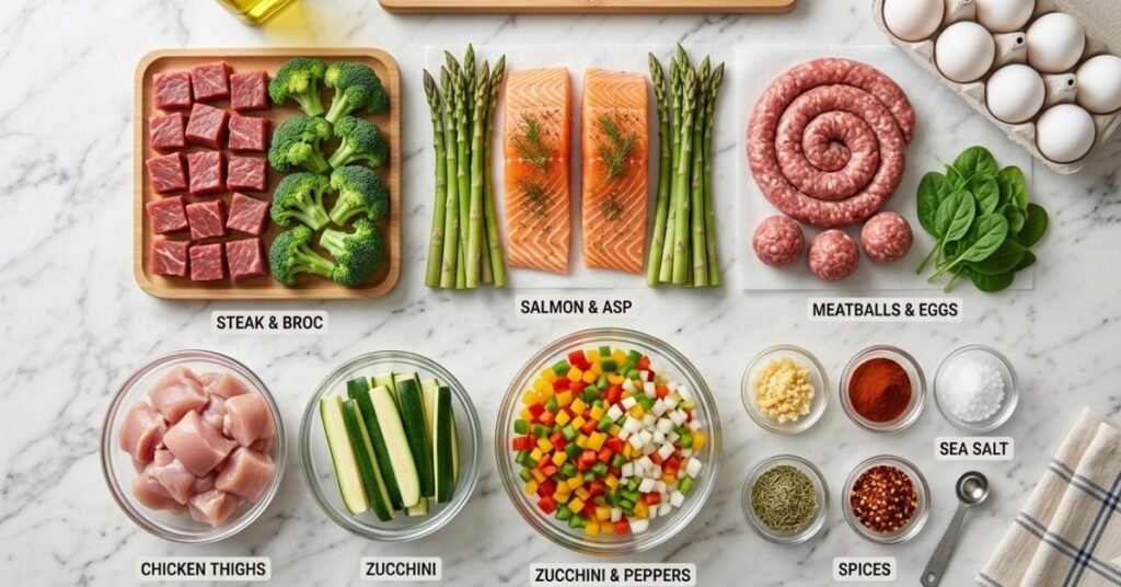 - Fats & Seasonings: Avocado oil (high smoke point), Grass-fed butter, Garlic, Lemon, Smoked Paprika, and Sea Salt.